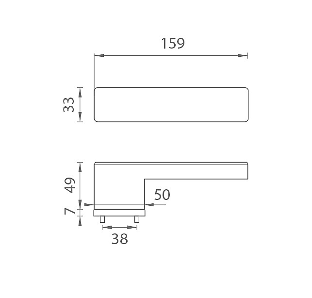 Rozetová klika na interiérové dveře s obdélníkovou rozetou je vyrobena z materiálů vysoké kvality - zamak a je povrchově upravena. Rozeta má rozměr 52 x 33 mm a tloušťku jen 7 mm. Minimalistický design rozety s vysokou stabilitou kliky na dveřích působí jemně, a tím ponechává prostor pro vyniknutí designu samotné kliky.
