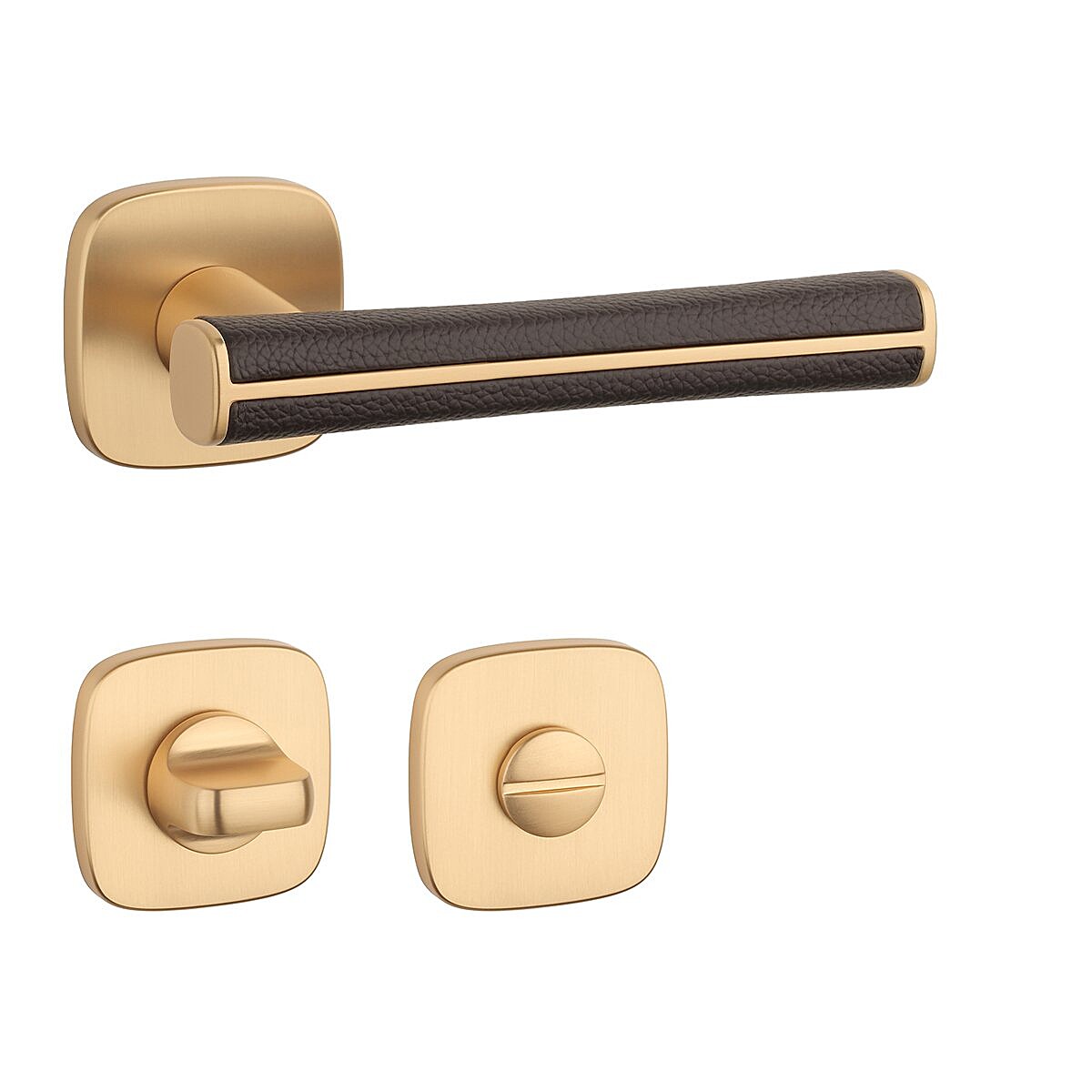 Dveřní kování MP AS - DAVIDIA - QR 7S (OLS - Mosaz broušená / hnědá kůže)