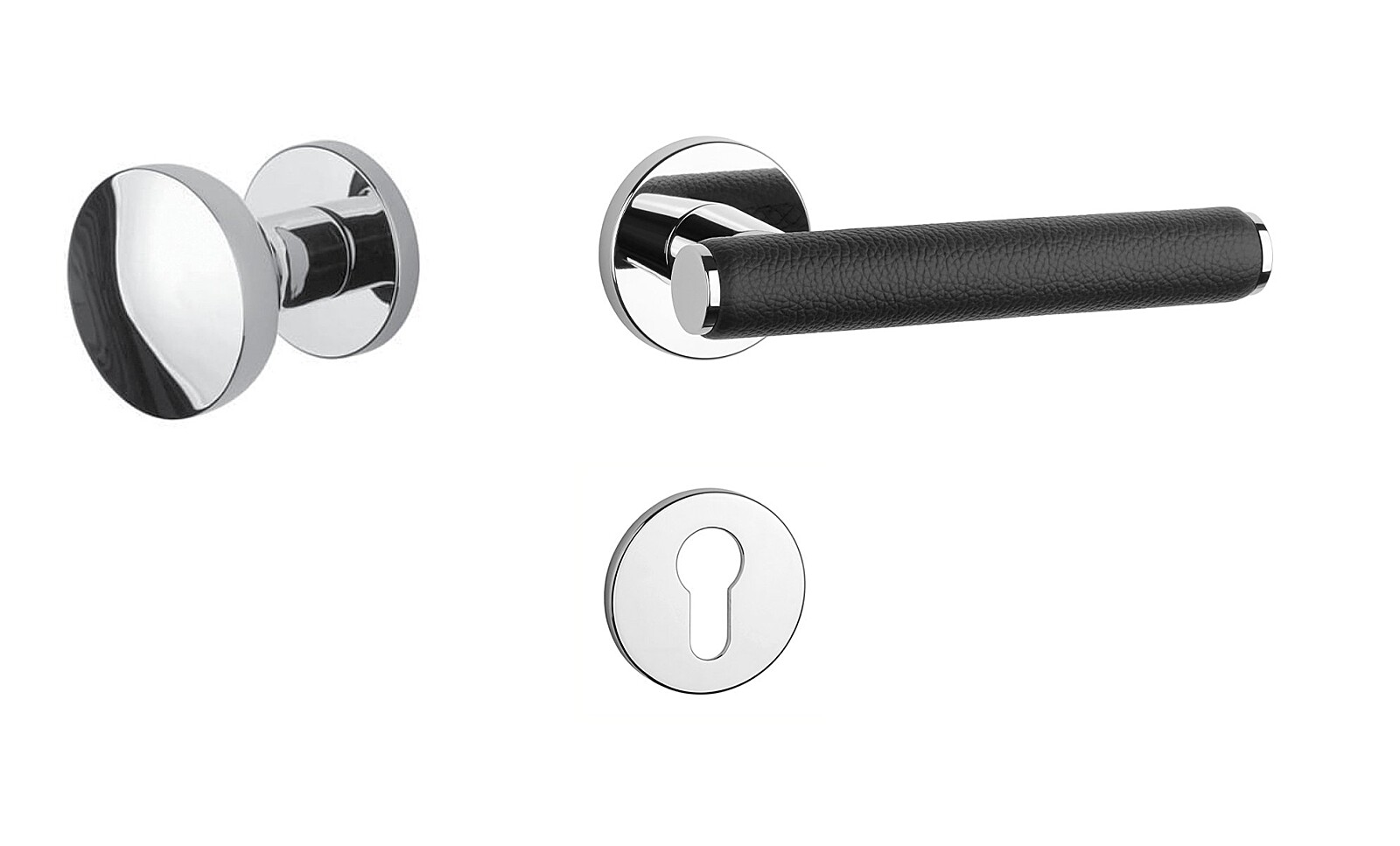Dveřní kování MP AS - EGERIA - R 7S (OC - Chrom lesklý / černá kůže)