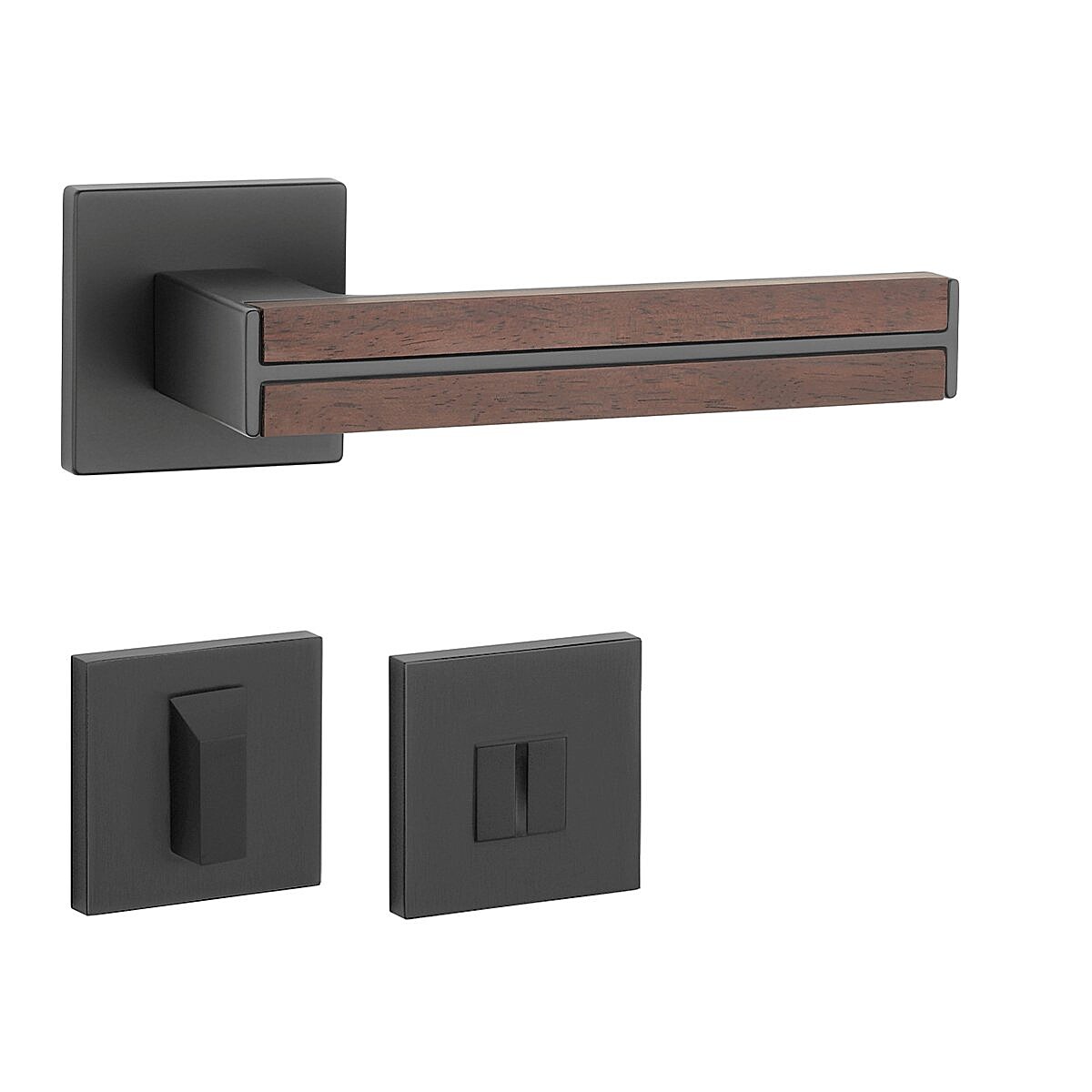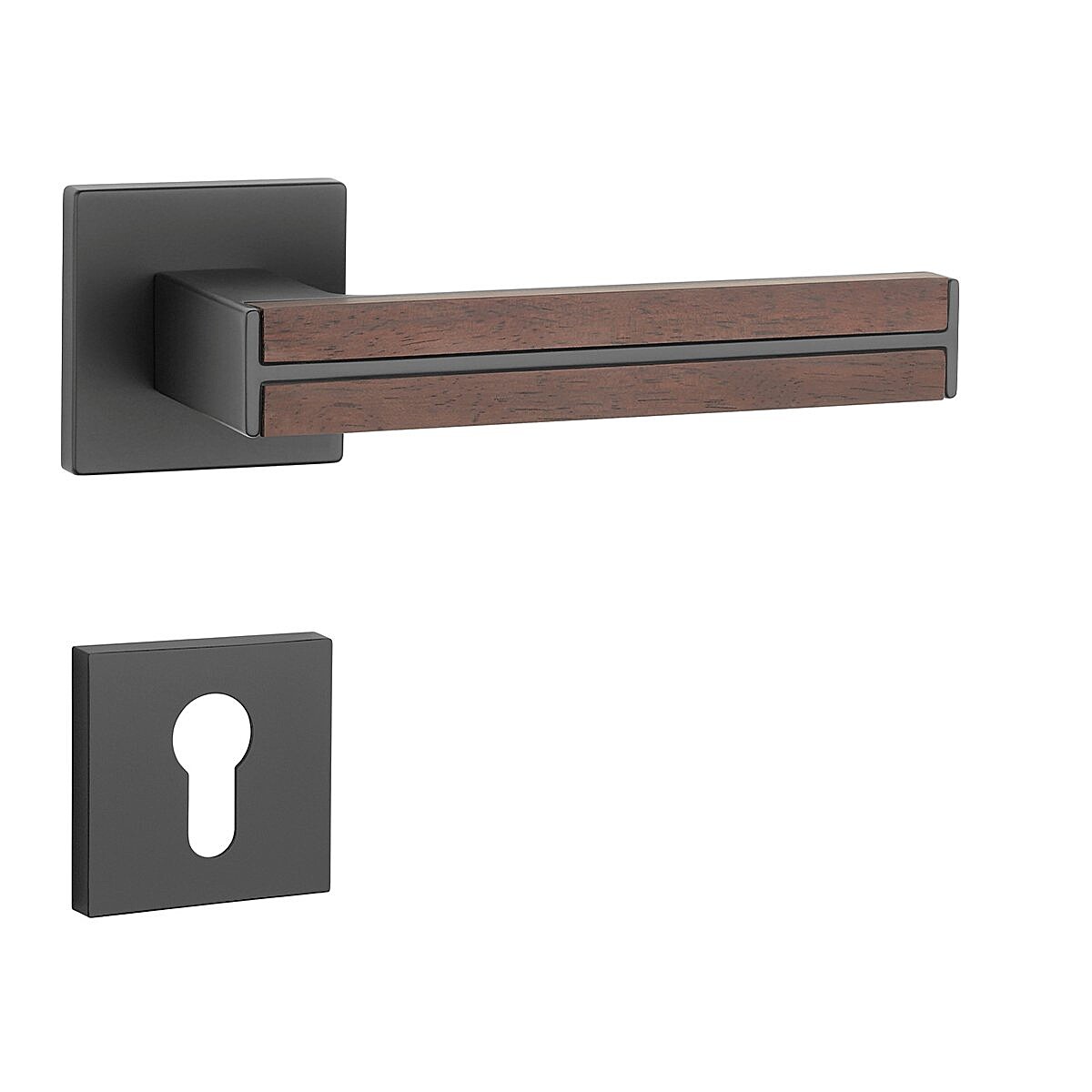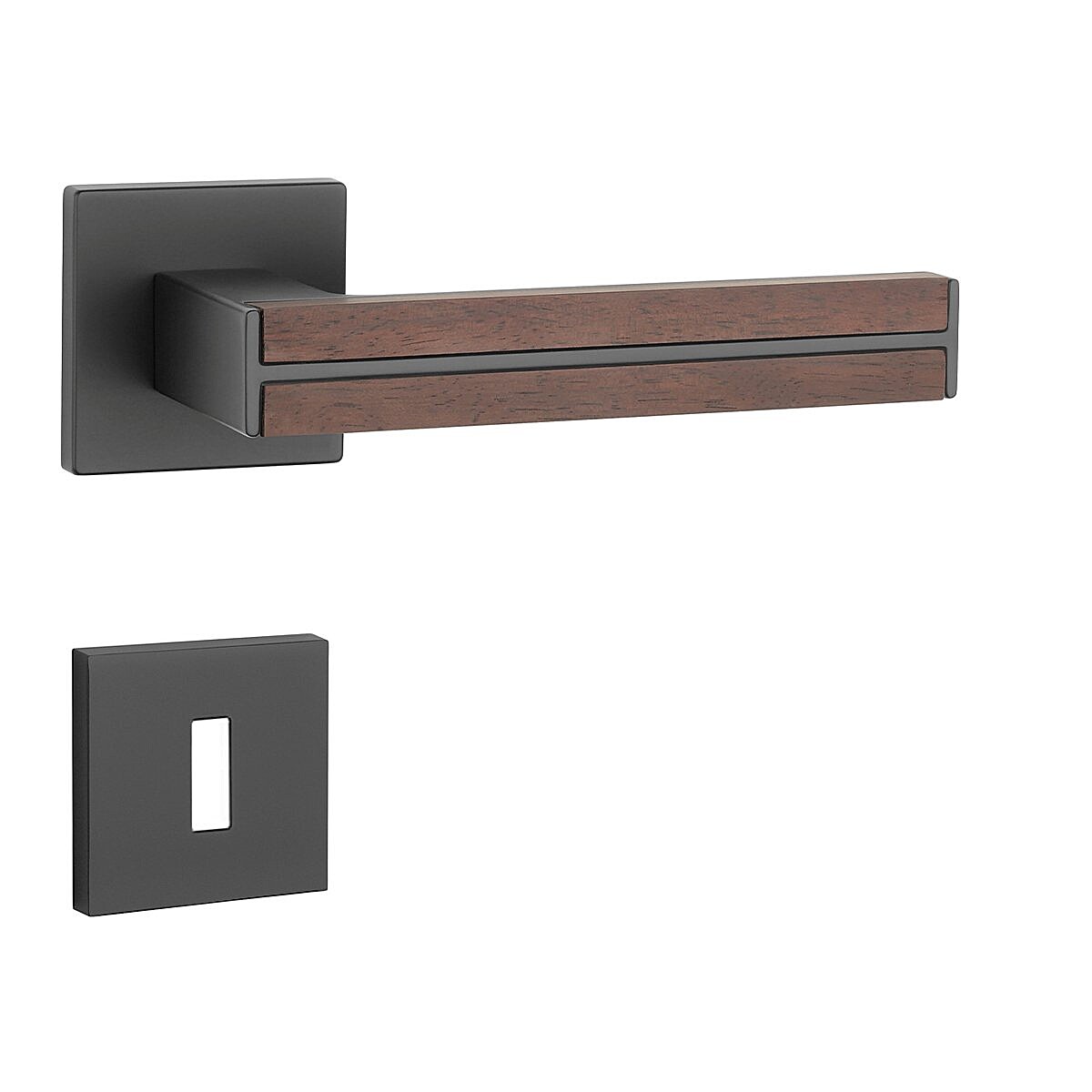 Rozetová klika na interiérové dveře s hranatou oblou rozetou je vyrobená z materiálů vysoké kvality - zamak a je povrchově upravená. Klika působí stylově a moderně, což podtrhuje i kombinace černé barvy s santalovým dřevem. Tento dekorační prvek jí dodává unikátní vzhled a navozuje příjemný pocit tepla a přírody.