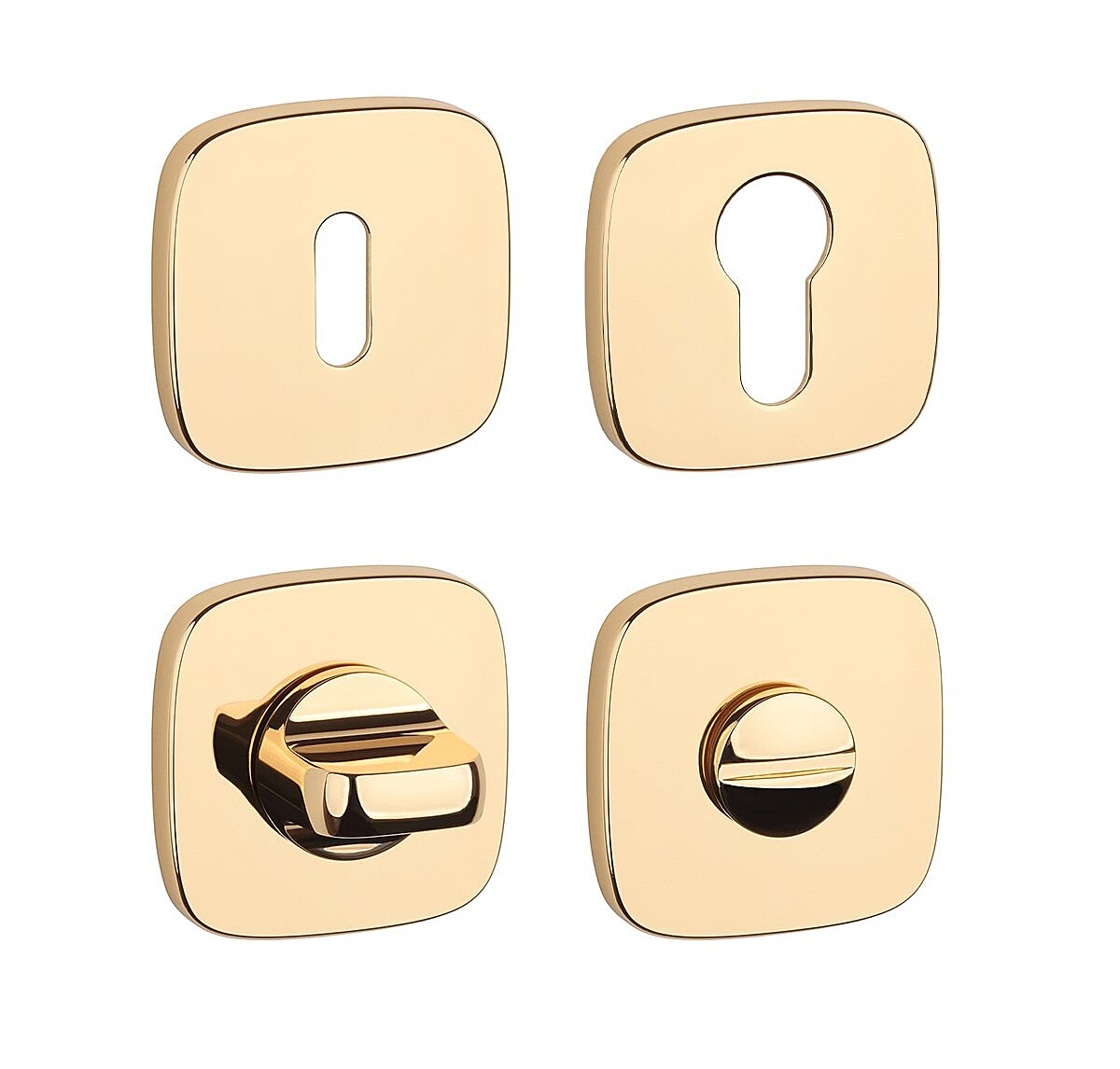 Provedení: oválný otvor pro interiérový klíč (BB), otvor pro cylindrickou vložku (PZ), WC set s vmontovaným klíčem. Balení obsahuje 2 kusy rozet (pár) a rozety WC jsou v balení jako set.