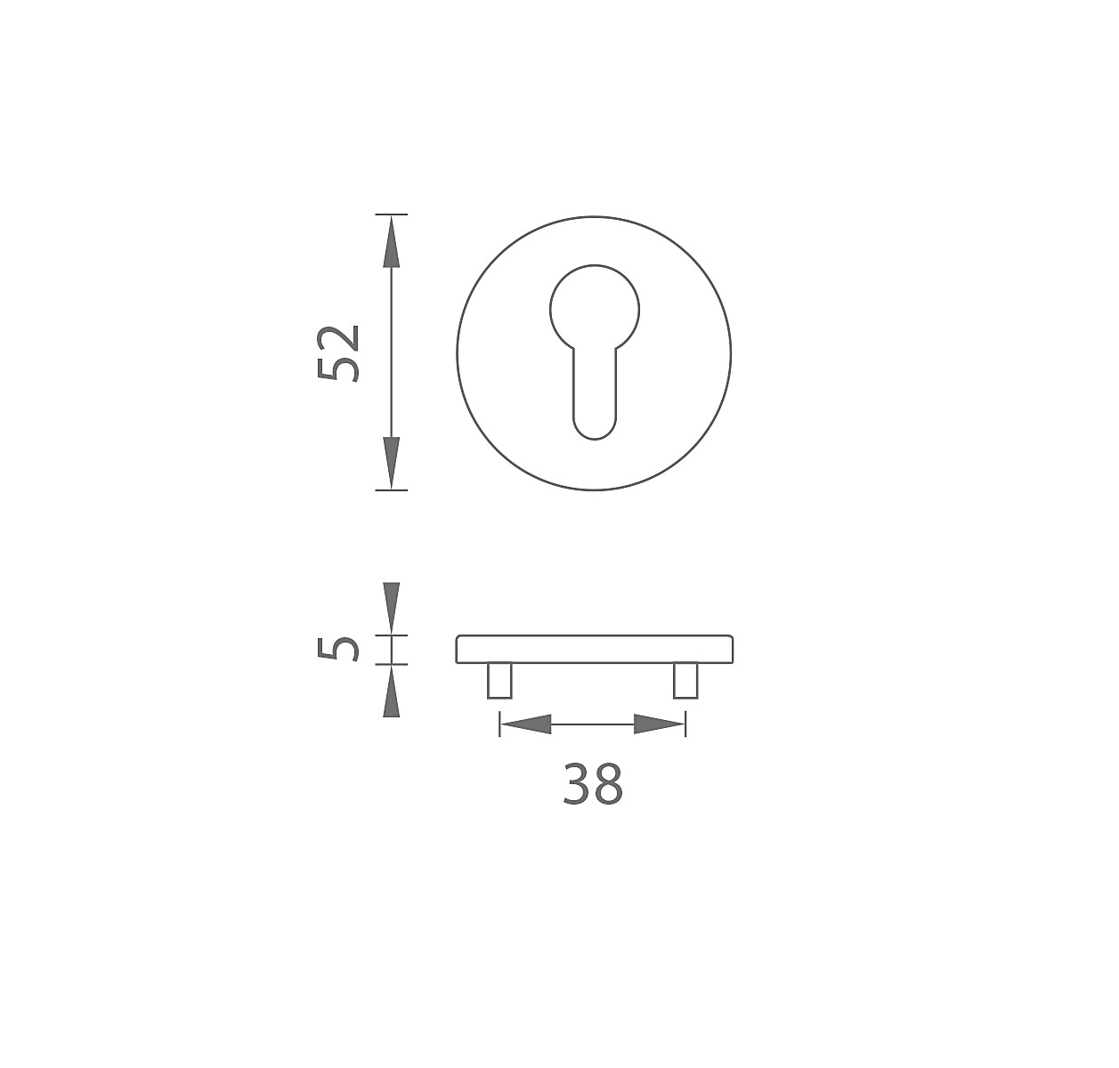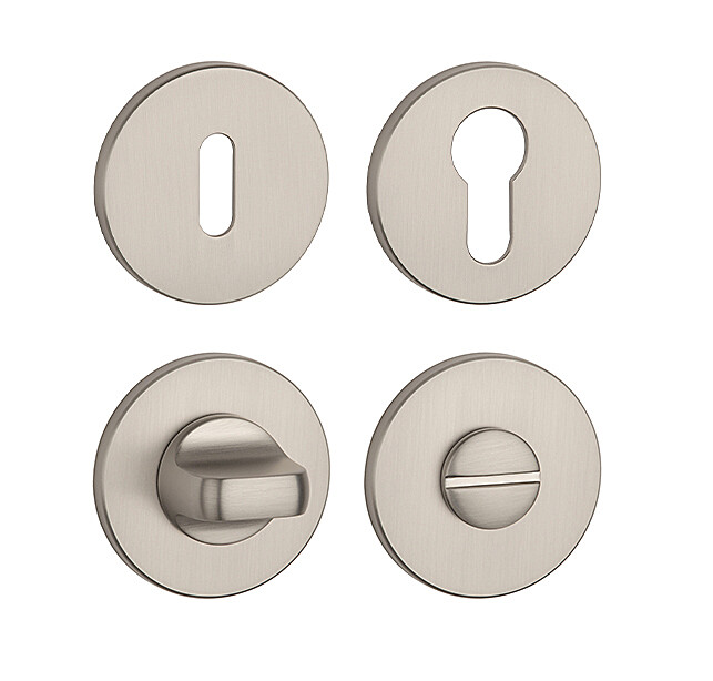 Kulatá rozeta je vyrobená z materiálů vysoké kvality - zamak a je povrchově upravená. Rozeta má průměr 52 mm, tloušťku 5 mm a oválný otvor pro interiérový klíč (BB), otvor pro cylindrickou vložku (PZ), WC set s vmontovaným klíčem.