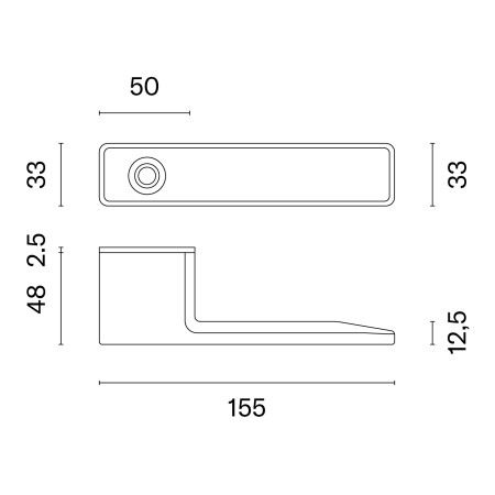 Rozeta má rozměry 50 mm x 33 mm. Je tenká jen 2,5 mm a stává se tak téměř neviditelnou součástí designu kliky.