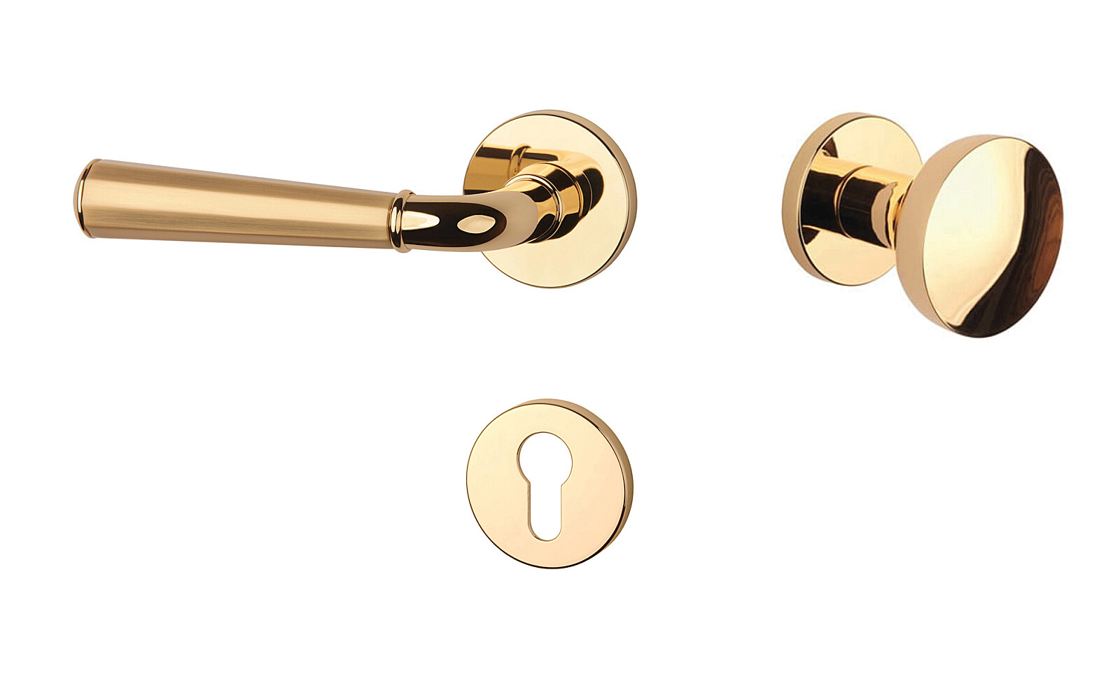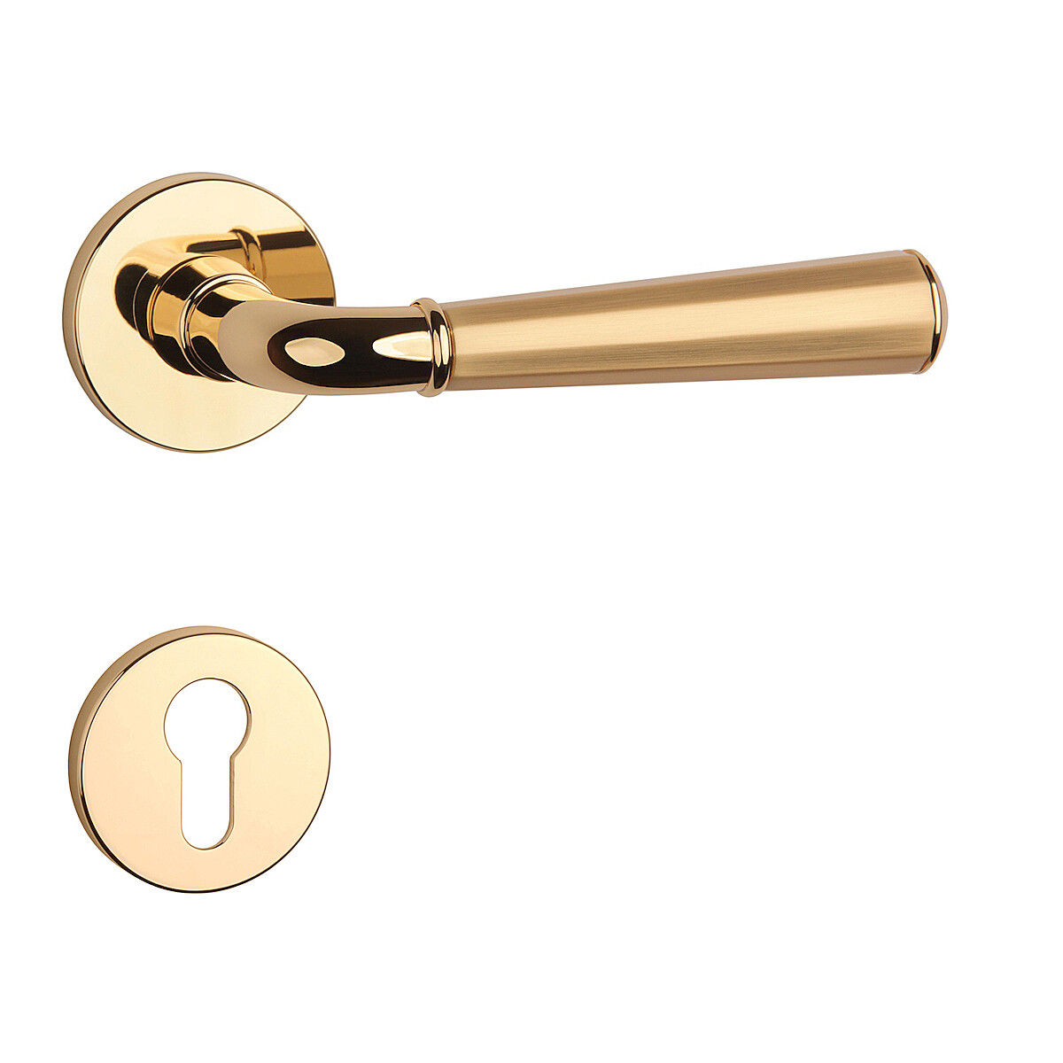Dveřní kování MP MARIGOLD 3 - R 7S (OLV/OLS/OLV - Mosaz leštěná lakovaná / mosaz broušená / mosaz leštěná lakovaná)