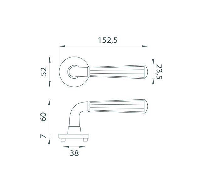 Základním materiálem použitým u klik MARIGOLD je zamak (slitina zinku) s lesklým povrchem. Kliky jsou na kulatých rozetách s průměrem 52 mm a tloušťkou jen 7 mm.