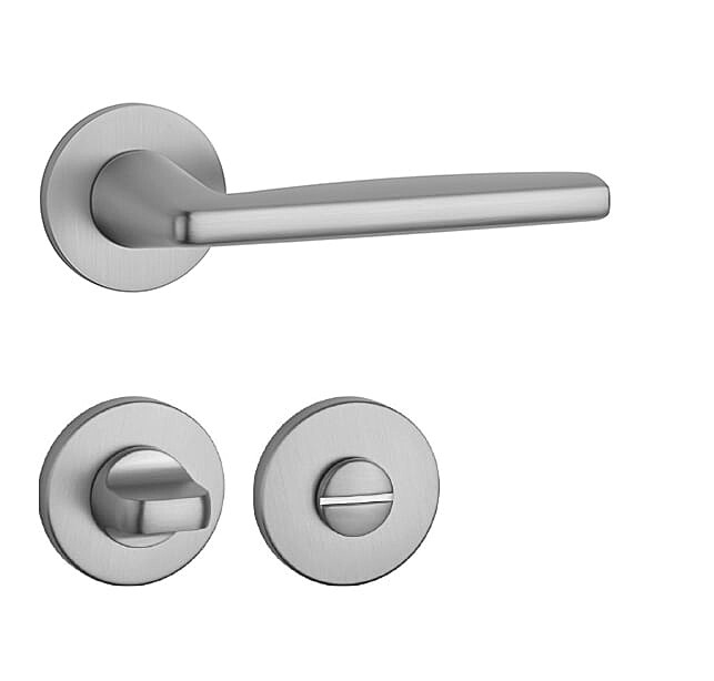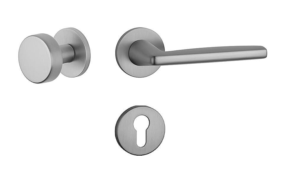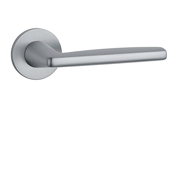 Rozetová klika na interiérové dveře s kulatou rozetou je vyrobena z materiálů vysoké kvality - zamak a je povrchově upravena. Rozeta má průměr 52 mm a tloušťku jen 7 mm. Minimalistický design rozety s vysokou stabilitou kliky na dveřích působí jemně, a tím ponechává prostor pro vyniknutí designu samotné kliky.