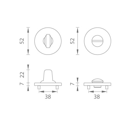 Kulatá rozeta je vyrobena z materiálů vysoké kvality - zamak a je povrchově upravena. Rozeta má průměr 52 mm, tloušťku 7 mm a oválný otvor pro interiérový klíč (BB), otvor pro cylindrickou vložku (PZ), WC set s vmontovaným klíčem. Balení obsahuje 2 kusy rozet (pár) a rozety WC jsou v balení jako set.