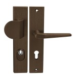 Štítová klika na vchodové a bezpečnostní dveře s bezpečnostním hranatým štítem s překrytím cylindrické vložky je vyrobena z hliníku a je povrchově upravena. Hranatý štít má rozměry 52 mm x 242 mm a tloušťku 15 mm.