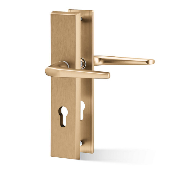 Bezpečnostní kování vhodné pro vchodové dveře s certifikátem bezpečnosti BT3 odpovídající ČSN P ENV 1627. Vnější štít je zesílený, pevnostní šrouby spojující vnější a vnitřní štíty jsou chráněny proti odvrtání, otvor pro vložku je na vnějším štítu zesílen speciální kovovou výztuhou.