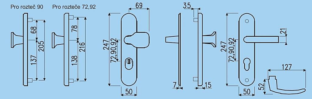 | Rozteč | 72 mm, 90 mm, 92 mm |