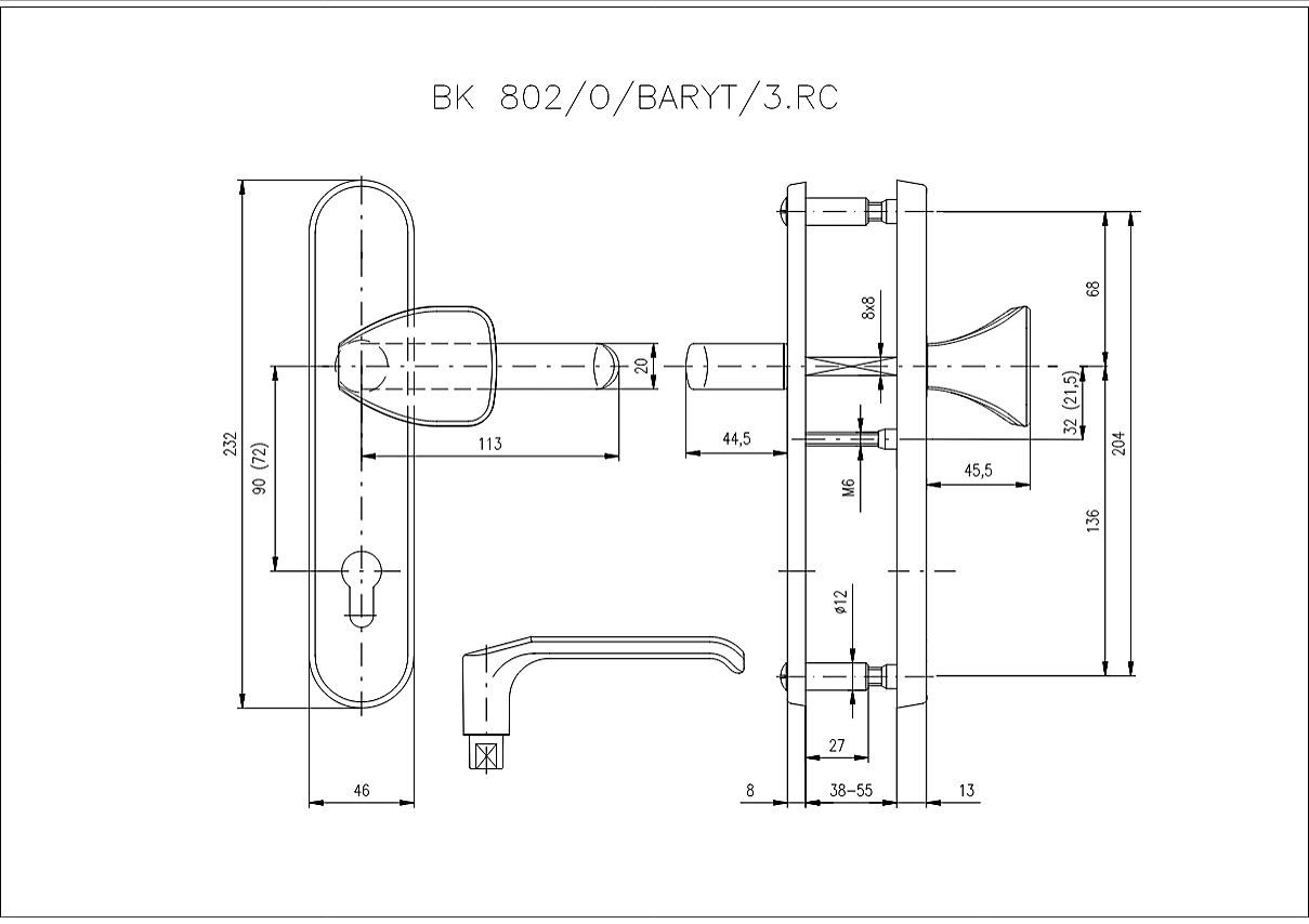 Bezpečnostní kování ROSTEX 802/O BARYT (NEREZ MAT)
