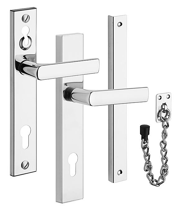 Bezpečnostní kování je určeno na vstupní dveře otevírané dovnitř i ven.