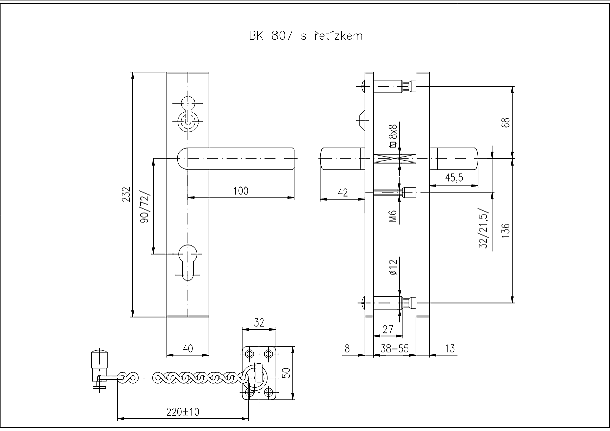 Bezpečnostní kování ROSTEX BK 807 s řetízkem (CHROM NEREZ)