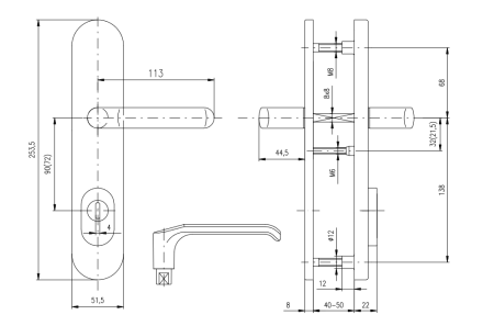 Bezpečnostní kování je určeno na vstupní dveře otevírané dovnitř i ven.