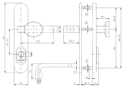 Bezpečnostní kování je určeno na vstupní dveře otevírané dovnitř i ven.
