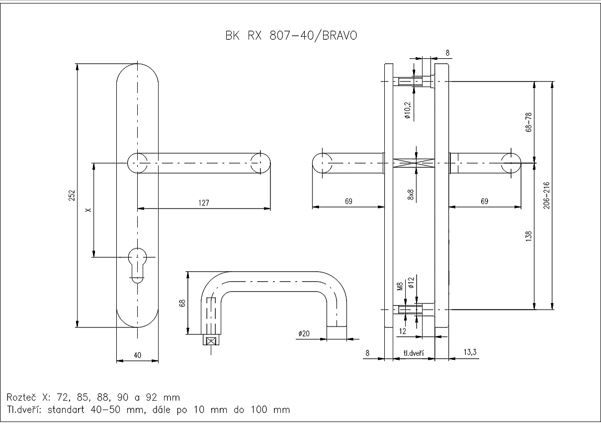 Bezpečnostní kování ROSTEX RX807-40 BRAVO (nerez mat)