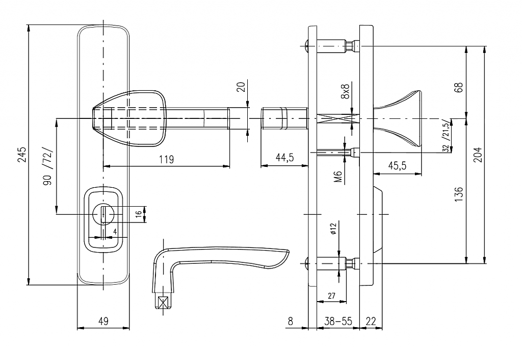 Bezpečnostní kování je určeno na vstupní dveře otevírané dovnitř i ven.