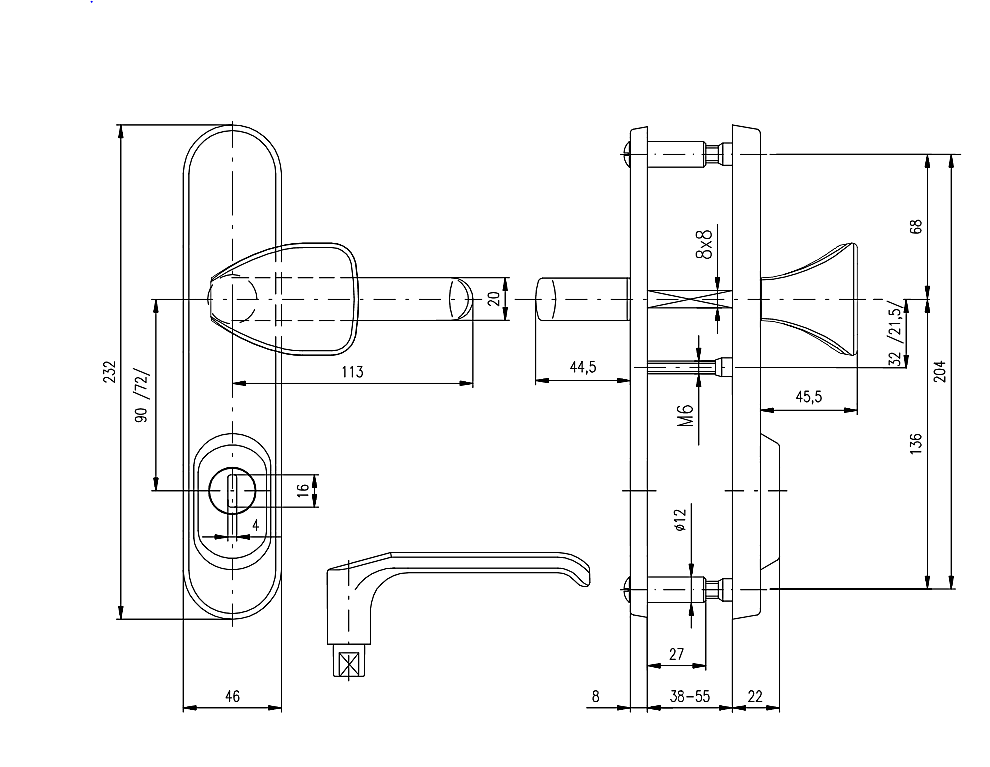 Tloušťka dveří: 38-55 mm
