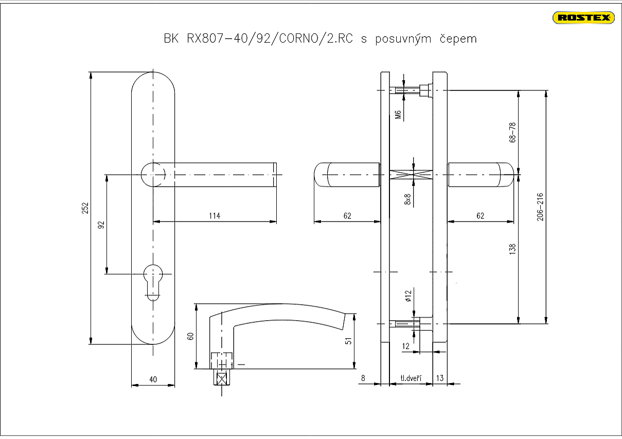 Bezpečnostní kování ROSTEX RX807-40/92 CORNO (bílá)