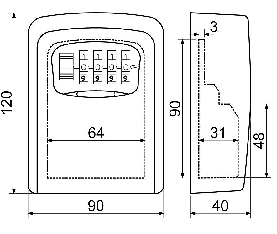 - Rozměr vnitřní š/v/h: 64 x 90 (karta), 64 x 48 (klíče) x 31 mm