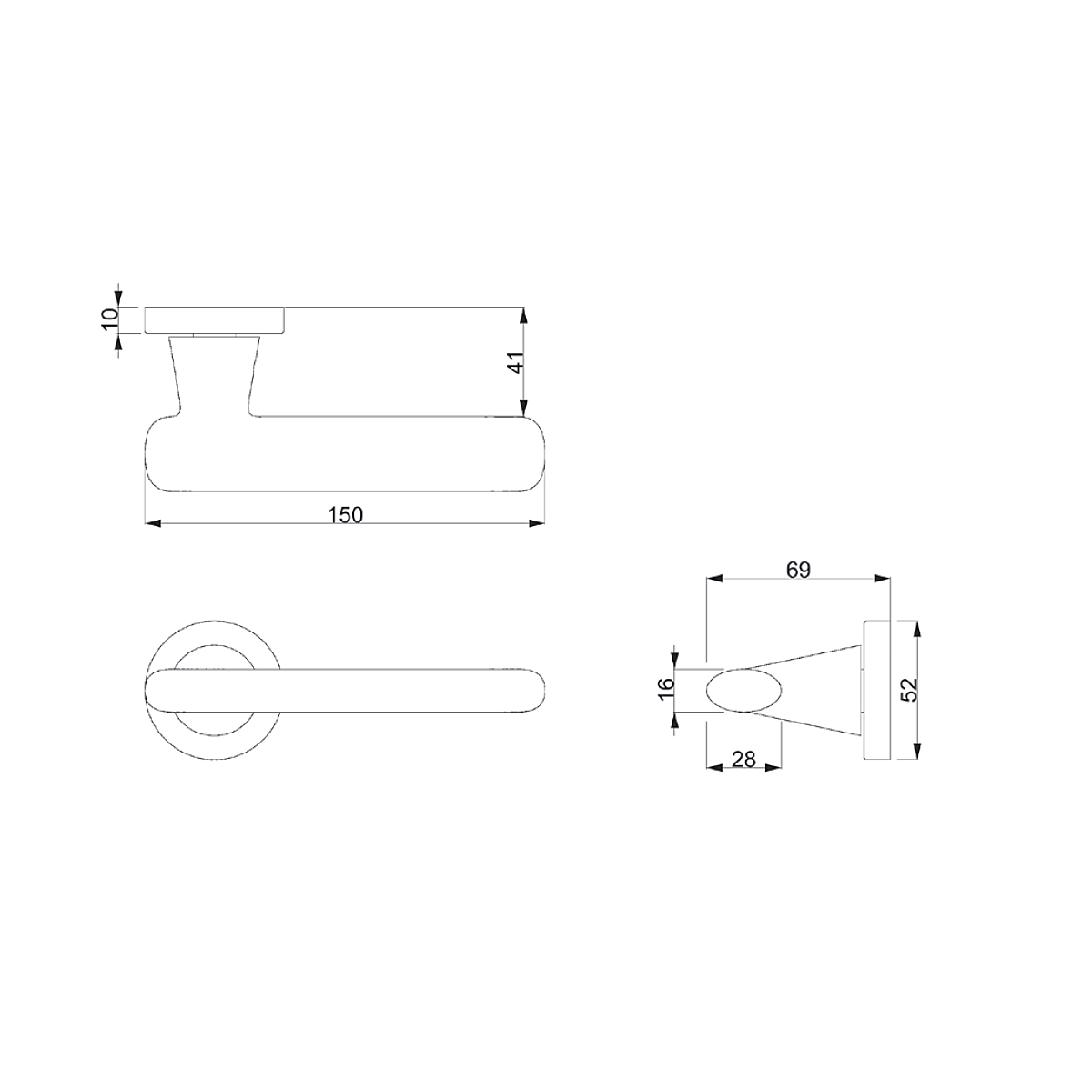 Rozetová klika CASTA na interiérové dveře s kulatou rozetou je vyrobená z kvalitního tvrzeného polyamidu. Rozeta má průměr 52 mm a tloušťku jen 10 mm.