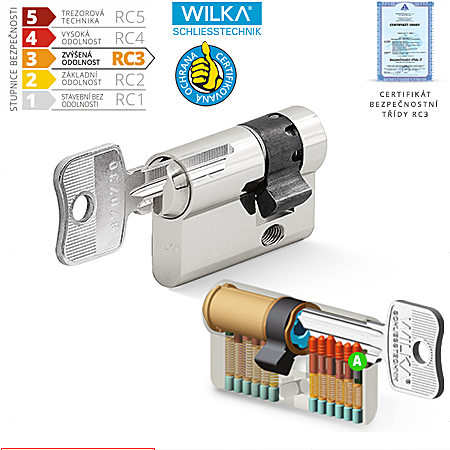 Cylindrická bezpečnostná půlvložka WILKA RC3 obsahuje: