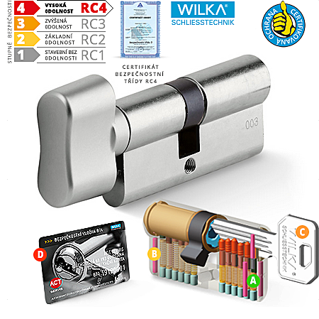 Cylindrická bezpečnostní vložka s knoflíkem ACT WILKA RC4