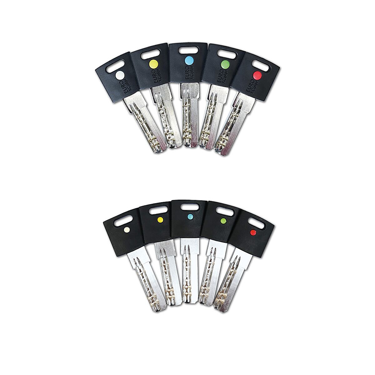 Příslušné klíče každé vložky obsahují vždy 5 různých barev pinů: červená (CRV), modrá (MOD), zelená (ZEL), žlutá (ZLU), bílá (BIL)