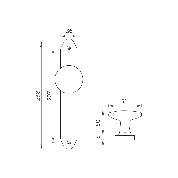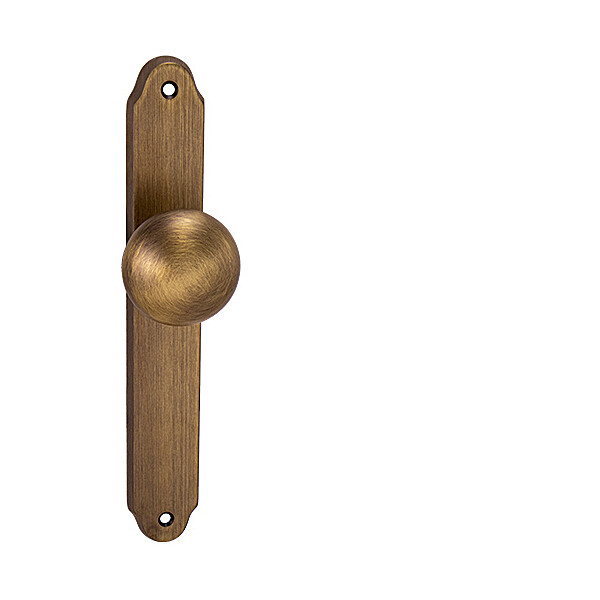 Dveřní pevná přímá koule na rustikálním štítě je vyrobena z materiálů vysoké kvality - zamak a je povrchově upravena. Koule má průměr 51 mm a štít má rozměry 36 mm x 238 mm.