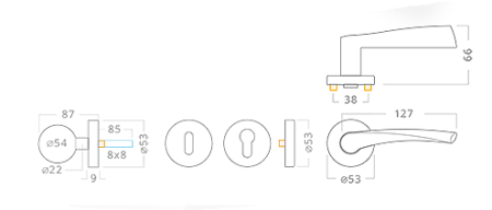 | Ostatní parametry | Kluzné ložisko, Kování na plastové konstrukci, Prošroubování skrz dveře, Vratná pružina |