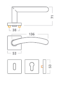 | Ostatní parametry | Kování na plastové konstrukci, Kuličkové ložisko, Prošroubování skrz dveře, Vratná pružina |