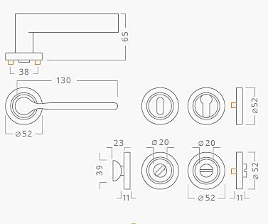 | Typ otvoru - varianta | Otvor na cylindrickou vložku PZ, Otvor pro obyčejný klíč BB, WC klíč |