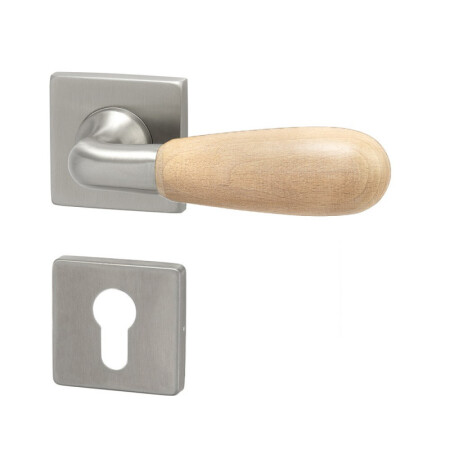 Dveřní klika WS 00 s hranatou rozetou je vhodná k instalaci do interiéru i exteriéru, vyrobená z nerezové oceli DIN 1.4301 se satinovaným matným povrchem a rukojetí z bukového dřeva s moderním a nadčasovým designem, hygienicky nezávadná, s dlouhou životností. Povrchová úprava nerezové části je realizována kartáčováním, nejsou na ni nanášeny žádné další laky, či prováděny povrchové úpravy.