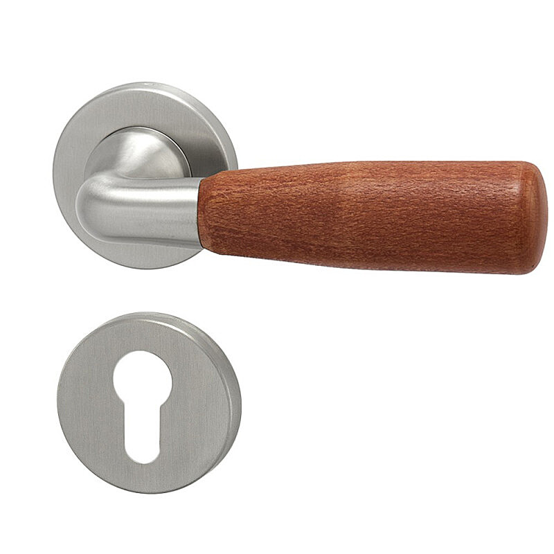 Dveřní klika WS 01 s kulatou rozetou je vhodná k instalaci do interiéru i exteriéru, vyrobená z nerezové oceli DIN 1.4301 se satinovaným matným povrchem a rukojetí z bukového dřeva s moderním a nadčasovým designem, hygienicky nezávadná, s dlouhou životností. Povrchová úprava nerezové části je realizována kartáčováním, nejsou na ni nanášeny žádné další laky, či prováděny povrchové úpravy.