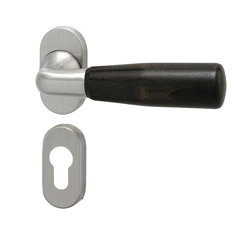 Dveřní klika WS 01 s oválnou rozetou je vhodná k instalaci do interiéru i exteriéru, vyrobená z nerezové oceli DIN 1.4301 se satinovaným matným povrchem a rukojetí z bukového dřeva s moderním a nadčasovým designem, hygienicky nezávadná, s dlouhou životností. Povrchová úprava nerezové části je realizována kartáčováním, nejsou na ni nanášeny žádné další laky, či prováděny povrchové úpravy.