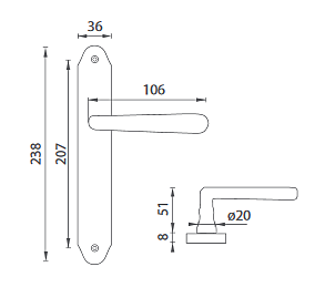 Štítová klika na interiérové dveře s rustikálním štítem je vyrobena z materiálů vysoké kvality - mosaz a je povrchově upravena. Rustikální štít má rozměry 36 mm x 238 mm.