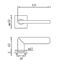 Rozetová klika na interiérové dveře s hranatou rozetou je vyrobena z materiálů vysoké kvality - zamak a je povrchově upravena. Rozeta má rozměry 52 mm x 52 mm a tloušťku pouze 5 mm.