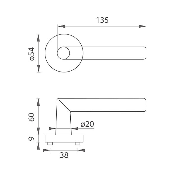 Rozetová klika na interiérové dveře s kulatou rozetou z kvalitní nerezavějící oceli, známé jako nerez a je povrchově upravena. Rozeta má průměr 54 mm a tloušťku 9 mm. Je barevně stabilní a odolná vůči opotřebení. Kování je testováno dle normy ČSN EN 1906: 2012 na 200 000 cyklů.
