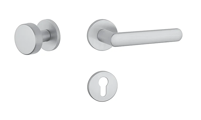 Rozetová klika na interiérové dveře s kulatou rozetou je vyrobena z materiálů vysoké kvality - zamak a je povrchově upravena. Rozeta má průměr 52 mm a tloušťku jen 7 mm. Minimalistický design rozety s vysokou stabilitou kliky na dveřích působí jemně, a tím ponechává prostor pro vyniknutí designu samotné kliky.