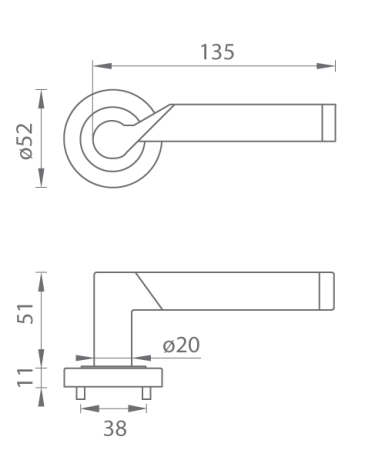 Rozetová klika na interiérové dveře s kulatou rozetou je vyrobena z materiálů vysoké kvality - zamak a z kvalitní nerezavějící oceli, známé jako nerez a je povrchově upravena. Rozeta má průměr 52 mm a standardní tloušťku 11 mm.