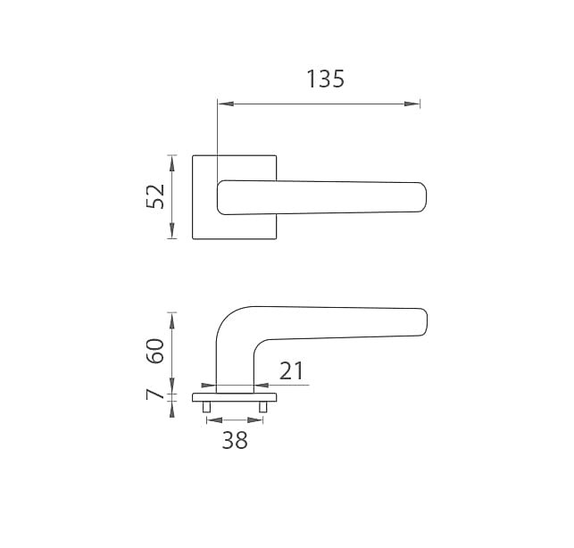 - Rozetová klika na interiérové dveře s hranatou rozetou je vyrobena z materiálů vysoké kvality - zamak a je povrchově upravena. Rozeta má průměr 52 mm a tloušťku jen 7 mm. Minimalistický design rozety s vysokou stabilitou kliky na dveřích působí jemně, a tím ponechává prostor pro vyniknutí designu samotné kliky.