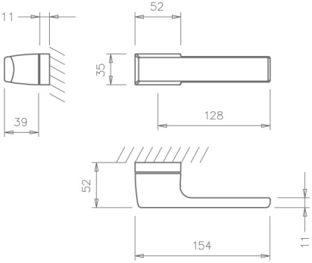Rozetová klika na interiérové dveře s obdélníkovou rozetou je vyrobena z materiálů vysoké kvality - zamak a je povrchově upravena. Rozeta má rozměry 52 mm x 35 mm a standardní tloušťku 11 mm. Samotná rozeta je součástí designu kliky.