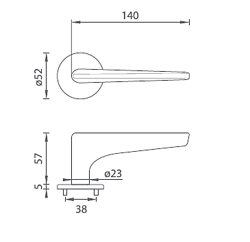 Rozetová klika na interiérové dveře s kulatou rozetou je vyrobena z materiálů vysoké kvality - mosaz a je povrchově upravena. Rozeta má průměr 52 mm a tloušťku pouze 5 mm.
