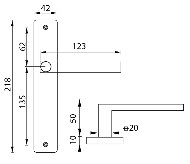 Štítová klika na interiérové dveře s hranatým štítem je vyrobena z vysoce kvalitní nerezavějící oceli, známé jako nerez a je povrchově upravena. Hranatý štít má rozměry 42 mm x 218 mm.
