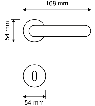 Rozetová klika na interiérové dveře s kulatou rozetou je vyrobena z materiálů vysoké kvality - mosaz a je povrchově upravena. Rozeta má průměr 54 mm.
