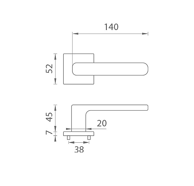 Rozetová klika na interiérové dveře s hranatou rozetou je vyrobena z materiálů vysoké kvality - zamak a je povrchově upravena. Rozeta má průměr 52 mm a tloušťku jen 7 mm. Minimalistický design rozety s vysokou stabilitou kliky na dveřích působí jemně, a tím ponechává prostor pro vyniknutí designu samotné kliky.