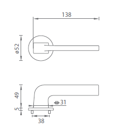 Rozetová klika na interiérové dveře s kulatou rozetou je vyrobena z materiálů vysoké kvality - zamak a je povrchově upravena. Rozeta má průměr 52 mm a tloušťku pouze 5 mm.