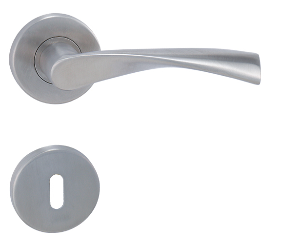 Rozetová klika na interiérové dveře s kulatou rozetou z kvalitní nerezavějící oceli, známé jako nerez a je povrchově upravena. Rozeta má průměr 54 mm a tloušťku 9 mm. Je barevně stabilní a odolná vůči opotřebení. Kování je testováno dle normy ČSN EN 1906: 2012 na 200 000 cyklů.