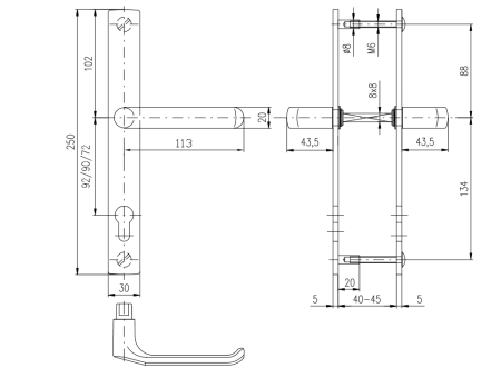 Montáž skrz dveře dvěma nerezovými šrouby M6.