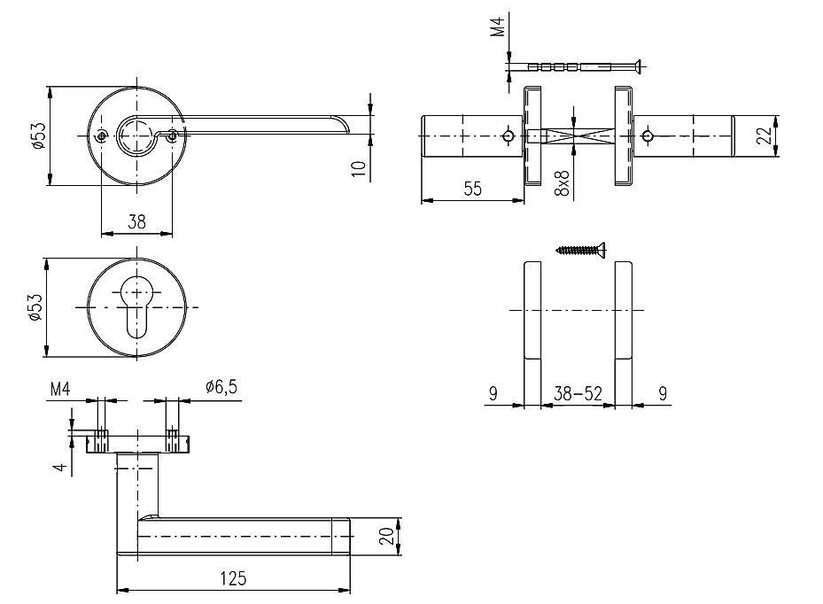 Tloušťka dveří: 38-52 mm